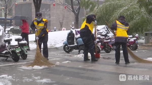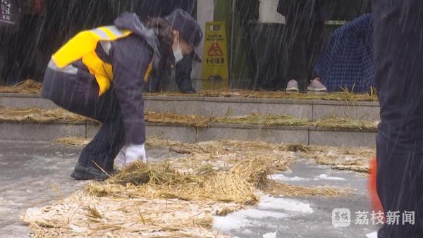 今天一早,南京浦口城管部门出动了各种清扫设备,和4000多人扫雪,确保市民们出行安全。除了人流量比较大的重点区域,他们也想到了一些细节的地方。