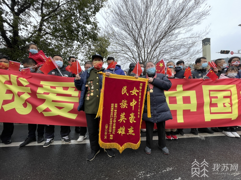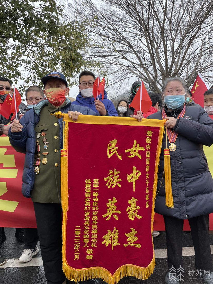 据了解,两位老人是身份特殊的球迷,分别是空军一等功臣、江苏省军区苏州第五干休所的战斗英雄施光礼,曾参加抗美援朝的女兵、江苏省军区苏州第二干休所老干部遗孀王化珍。他们平时最大的爱好是看各种体育赛事,得知女足夺冠后十分高兴,希望能到现场亲自迎接英雄凯旋。