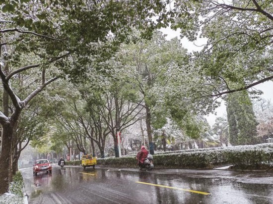 2月7日,泰州市迎来虎年首场降雪,漫天飞舞的雪花将市区装扮得分外美丽。