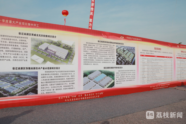 仪式开始前,现场观摩了展牌,宿迁高新区、张家港宿豫工业园区、化工园区负责人汇报了一季度5亿元以上集中开工项目情况及推进计划。