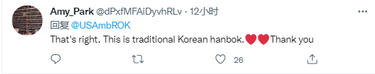 “提起韩国你会想到什么?泡菜、韩国流行音乐、韩剧...当然还有韩服,”德尔科尔索8日在推特上用韩英双语这样写道。此外,他还加上了“最初的韩服来自韩国”的标签,并配上自己穿韩服比心的图片↓