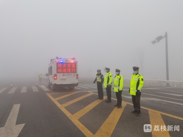 在严重出现大雾的路段,进行交通疏导,并安排巡逻车辆,在车流密集区、临近徐沛快速路及高速入口进行巡逻,并通过车载喇叭喊话、电子显示屏滚动播出安全提示标语、宣传车巡回宣传等形式,持续发布恶劣天气、道路通行等具体情况,引导驾驶人合理选择出行线路、时间,注意行车安全。