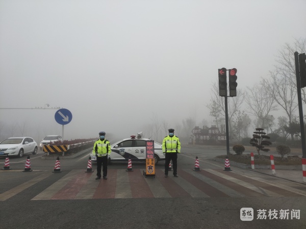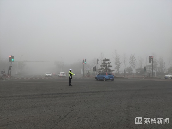 为了应对大雾天气,沛县公安局交警大队及时在辖区各重点路段、路口加派警力,疏导交通,保障居民出行。