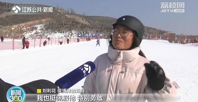 妈妈问他疼不疼,侯博洋说:妈妈我能坚持。“我也挺佩服他这种特别勇敢,像奥运冠军谷爱凌的精神,一次次摔倒、一次次起来。”妈妈说。