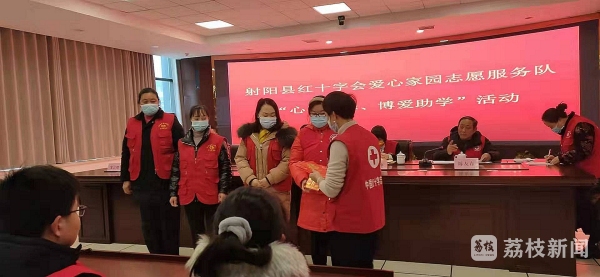 2月10日下午,射阳县红十字会爱心家园志愿服务队举行“心手相牵、博爱助学”活动,表彰寒假期间参加志愿服务活动中的优秀学生志愿者,并给12名困难学子发放开学红包。