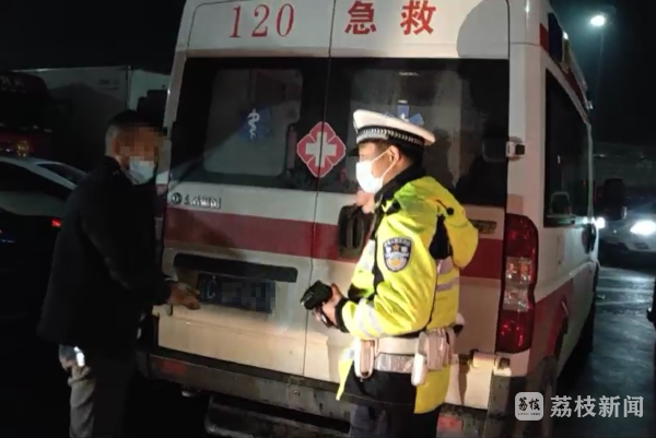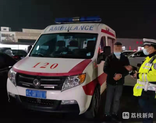 2月9日23时许,徐州市交警支队三堡公安检查站民警在淮徐高速古黄河服务区值勤时,发现一辆车顶闪着警示灯的安徽牌照救护车夹在车流中缓慢的行驶。民警立即上前询问车上是否有病人,是否需要警方协助。结果却发现了该车存在严重违法问题。