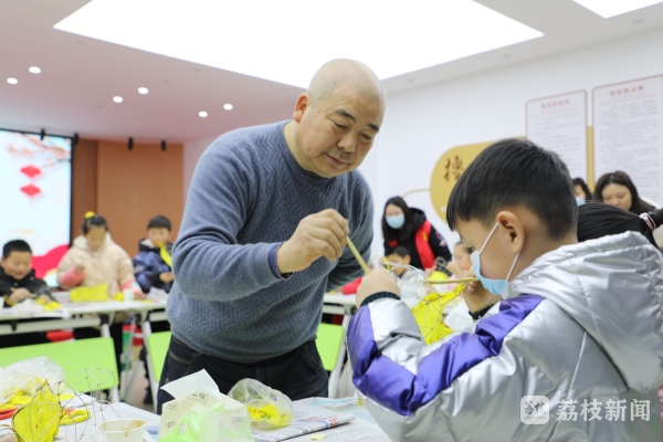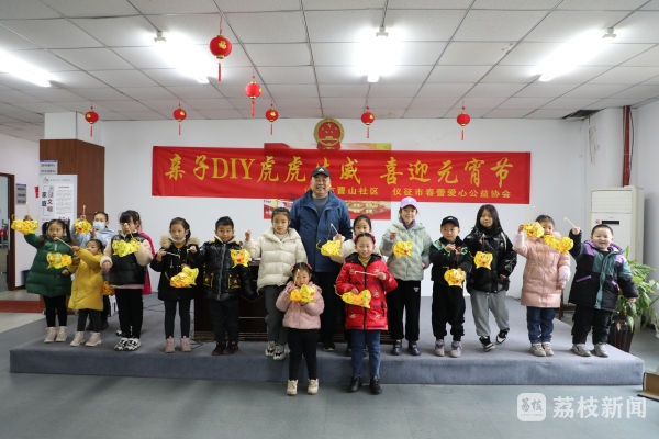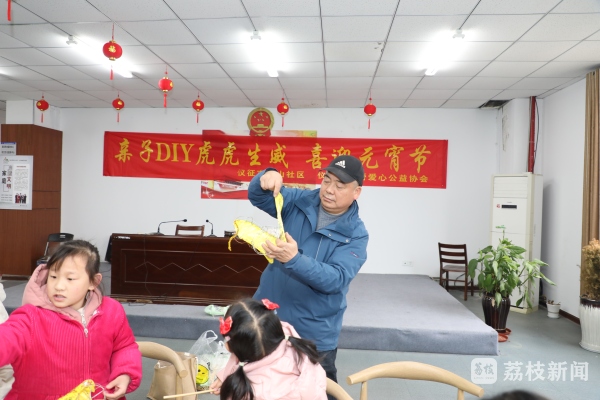 2月11日, 扬州彩灯非遗传承人、高级工艺美术师陈志康来到仪征青山镇胥浦家园社区、真州镇曹山社区、勤丰社区、西园社区指导社区居民和孩子一同制作“老虎”花灯,迎接即将到来的元宵佳节。