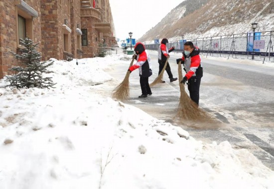 在2月11日下午召开的云顶场馆群场馆建设和赛事运行保障媒体吹风会上,云顶场馆群后勤副主任束文表示,有专业的铲冰除雪团队在下雪天“随下随清”,保障赛事运行。