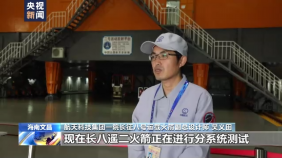 航天科技集团一院长征八号运载火箭副总设计师 吴义田:现在长八遥二火箭正在进行分系统测试,从我们分系统测试的进展和数据判读情况看,目前分系统测试结果正常,整个火箭的状态可控。