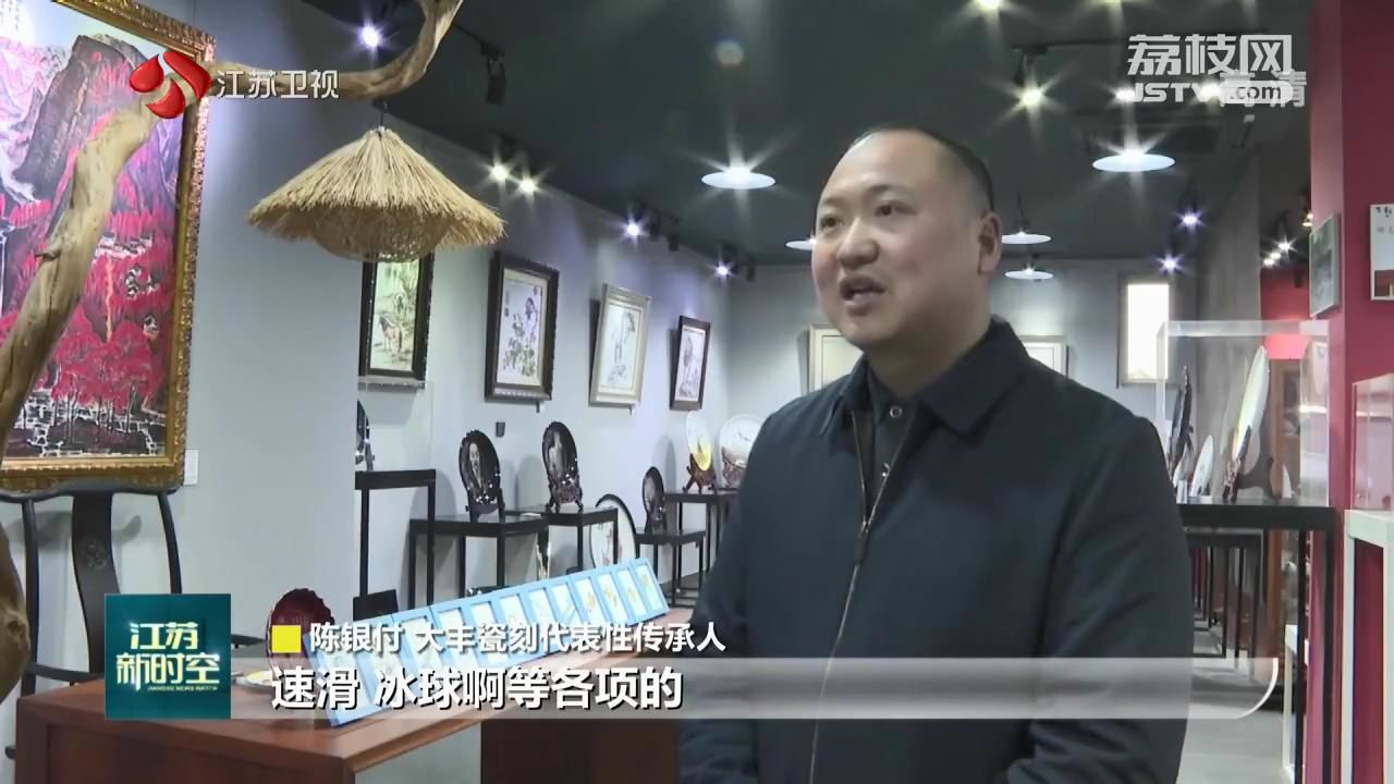 大丰瓷刻代表性传承人陈银付说:“让它们进行了冰壶、速滑、冰球啊等各项的这种冬奥的体育项目,也是我们一起在为冬奥助力加油。”