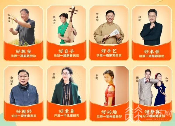 江苏文艺广播特邀全国道德模范、全国脱贫攻坚楷模赵亚夫,著名评弹艺术家、中国曲艺家协会副主席盛小云,著名笑星、国家一级演员陈峰宁,著名儿童文学作家、江苏省作家协会副主席祁智,江苏省体育局冬季运动管理中心主任朱晓军,全国优秀教师、南京市力学小学校长李琳,第29届中国戏剧梅花奖榜首、国家一级演员单雯和《小星星》节目主持人王悦、张洁一起代言这八个项目,邀请省内乃至全网的少年儿童参与到这个活动当中,以丰富多彩的实践活动,为孩子成长“赋能”。