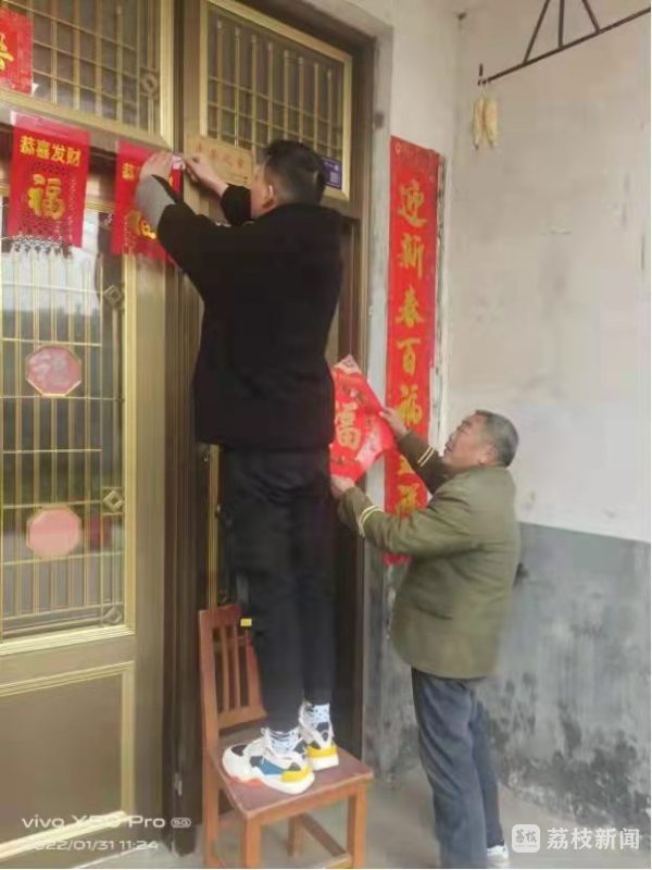 扫尘、贴春联是过年的开心事,但也是一些空巢老人的烦心事。“像我们村里很多年轻人都在外打工,由于疫情,逢年过节也没有办法回来,老人们如何过一个温暖幸福年是我一直牵挂的事。很多爷爷奶奶都是从小看着我长大的,他们有些腿脚也不是很方便,我就想着顺手就帮他们打扫打扫卫生,把春联贴了,也让他们能够感受到一丝暖意和温情。”化工学院的赵宇航笑着说道。