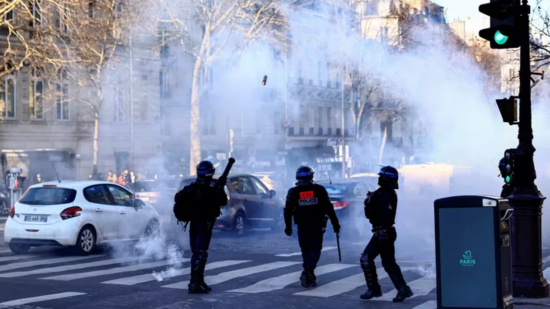抗议示威者聚集法国巴黎,警方动用催泪瓦斯驱赶