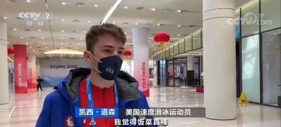 美国速度滑冰运动员 凯西·道森:我觉得饭菜真棒,服务给力。工作人员将一切都弄得超干净,他们也尽一切可能保证我们的用餐安全,为我们提供合适的营养及其他服务,饺子超级美味。