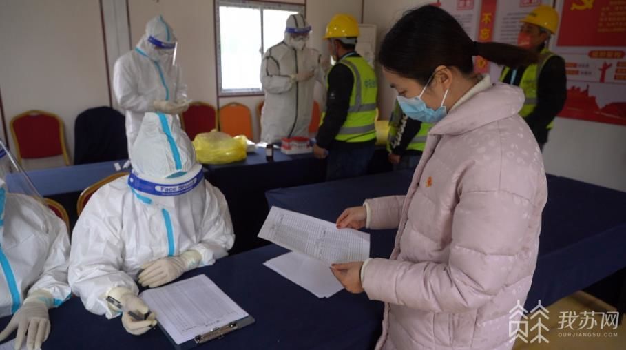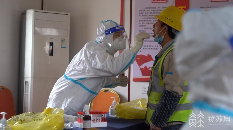 中午11点40分左右,记者来到润扬大桥酒店的施工现场,这里的工人们早早吃过午饭,参建方主要负责人,在对现场参建人员宣传疫情防控工作的重要性,并安排人员每十人一组,有序进入临时核酸采集点,依次进行咽拭子的取样。检测采用混检的方式进行,如果没有特殊情况,几个小时后就能出结果。