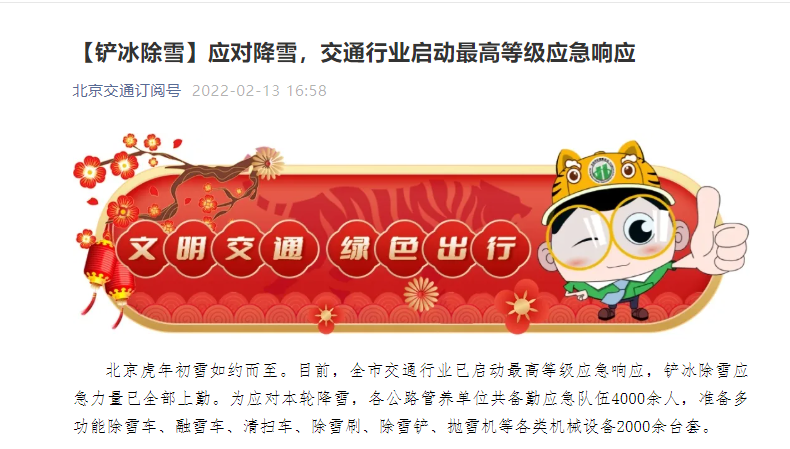 荔枝新闻讯 据“北京交通订阅号”微信公众号消息,北京市交通行业已启动最高等级应急响应。全文如下: