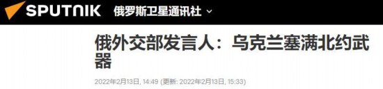 据俄罗斯卫星网13日报道,俄外交部发言人玛丽亚·扎哈罗娃谈及乌克兰问题时批评称,乌克兰塞满了北约武器,一些西方顾问也在那里成倍增加。