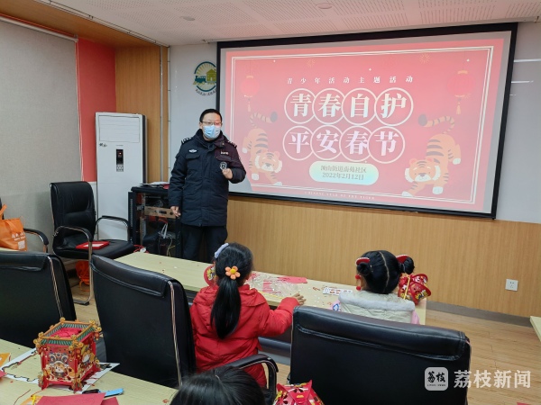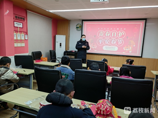 为进一步提高中小学生假期的安全防范意识和法制意识,确保学生们度过一个安全快乐的假期,2月12日,南京浦珠路查报站民警走进江北新区顶山街道南苑社区向辖区青少年开展了“青春自护•平安春节”为主题的假期安全教育活动。