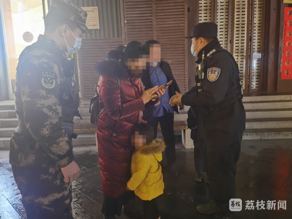 2月9日晚上8点多,南京市公安局特警支队武装巡逻一大队民警正在夫子庙快反点执勤,接到群众求助称旁边有一个小孩走失,民警赶忙上前查看,看到一个两三岁的小女孩在一位女士怀里哭个不停,民警立刻上前了解情况。该女士称,自己在西牌坊附近发现了这个小女孩一个人在路边哭,旁边没有大人,怀疑是与家人走失了,于是抱着小孩来向民警求助。