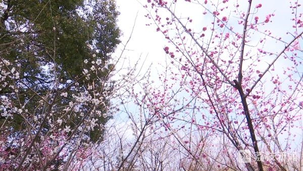 在常州溧阳街头,零星散落的梅花树上, 粉红色的梅花挂满枝头;在淮安,清晏园中红梅吐蕊,朵朵梅花凌寒盛开。