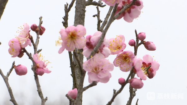 南京红、宫粉梅、白梅......玄武湖公园内,一朵朵梅花挂满枝头,有的含苞待放,有的花蕊初绽,微风吹过,花香沁人。人们徜徉其中,拍照打卡,记录下美好时光。