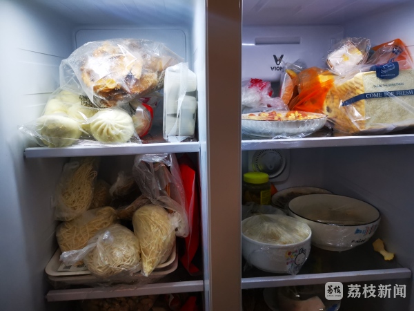 每年春节,家家户户都会储备各式各样的年货,甚至准备从大年三十吃到正月十五。不过年货准备多了也会带来不小的烦恼,剩下的吃不掉的年货应该如何处理呢?怎么吃才健康呢?春节前,我们关注了南京市民王女士为了准备过年囤积了不少大鱼大肉,各类腌制食品。记者看到冰箱冷冻层有一堆“家藏菜”:大块的咸肉、香肠。保鲜层塞满大大小小的袋装食物或蔬菜,自制腌菜,还有很多开了包装没吃完的食物。