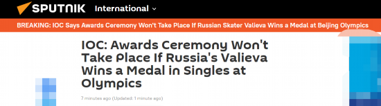 【环球网快讯】据俄罗斯卫星通讯社刚刚报道,国际奥委会称,如果俄罗斯花样滑冰选手瓦利耶娃在北京冬奥会获得奖牌,则将不举行颁奖仪式。