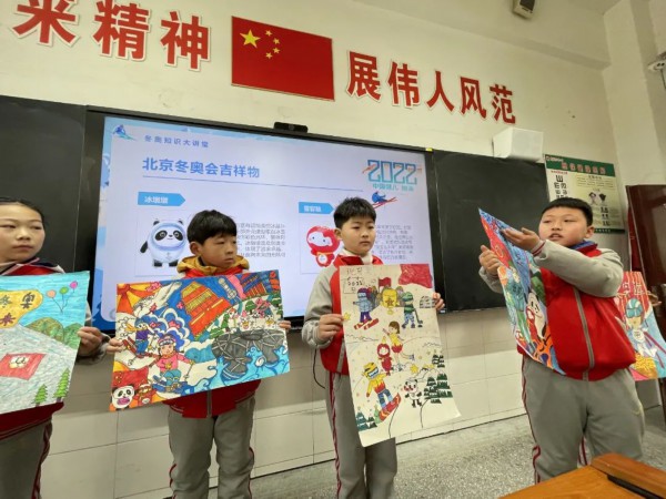 冬奥会吉祥物“冰墩墩”“雪容融”究竟有何寓意?冬奥会比赛项目有哪些?开学第一课中,学校还精心准备了“冬奥知识大讲堂”,分享冬奥主题海报,孩子们在学习中了解冬奥故事,感悟奥林匹克精神。