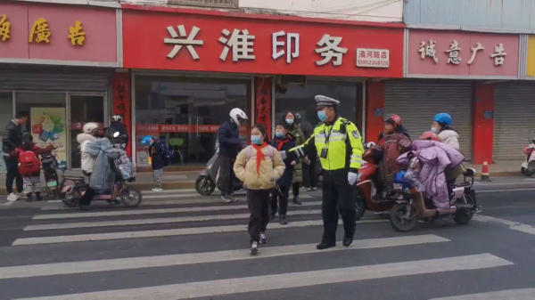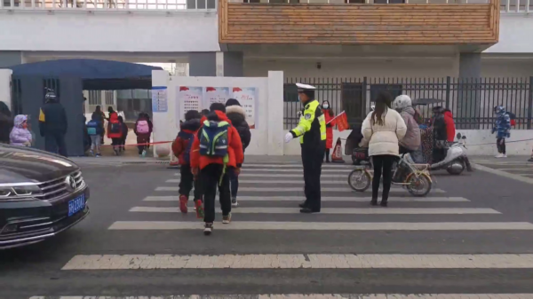上午7点,在淮阴师范学院第一附属小学的校门口,伴随着新学期到来,交警部门的护学岗也上线了。民警一边护送孩子们从下车地点平安进入校园,一边也疏导着校门外接送孩子的车辆。近40分钟的上学高峰,护学民警们在车流和校门之间不断往返着。