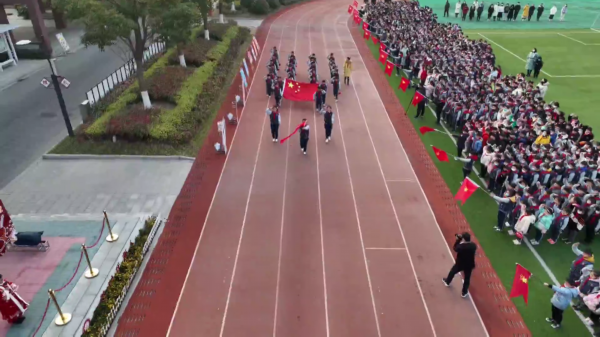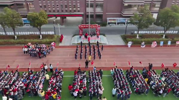 伴随着国歌声,五星红旗冉冉升起。学校在给学生营造一个励志、有趣的开学氛围的同时,将安全教育和疫情防控知识融入开学典礼和开学第一课,引导学生更好地适应新学期的校园生活。