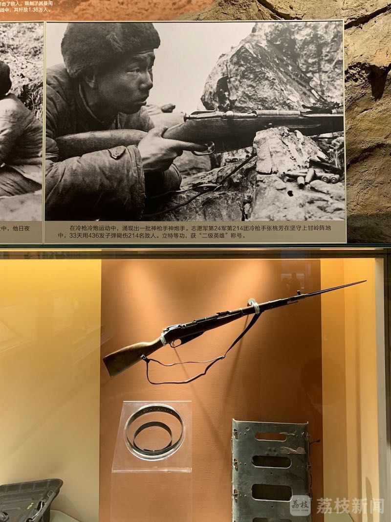 抗美援朝70周年主题展上关于志愿军冷枪冷炮运动的展区