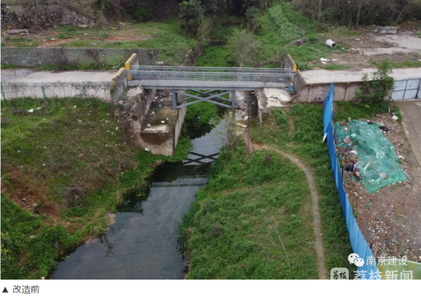 横穿钟秀街的紫金山泄洪沟之上,在改造前只有一条一米宽的临时钢板桥,供非机动车与行人通行。桥上不仅没有路灯,道路与河沟还成了垃圾堆放处,环境脏乱差居民们不愿靠近 。
