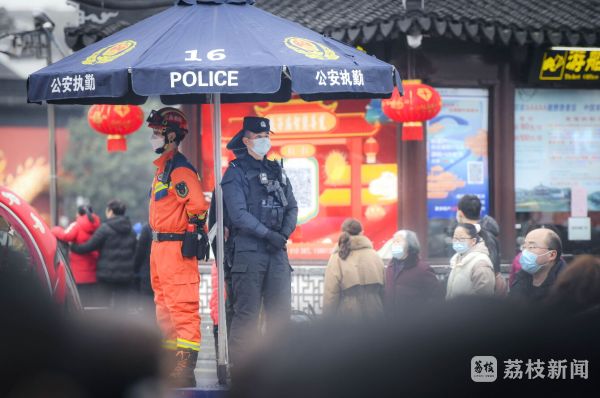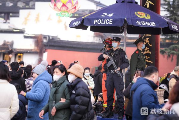 2022年元宵节当天,南京市公安局特(巡)警支队龙虎突击大队民警坚守岗位,全力保障景区安全。