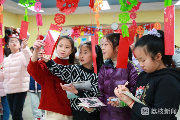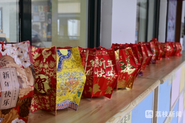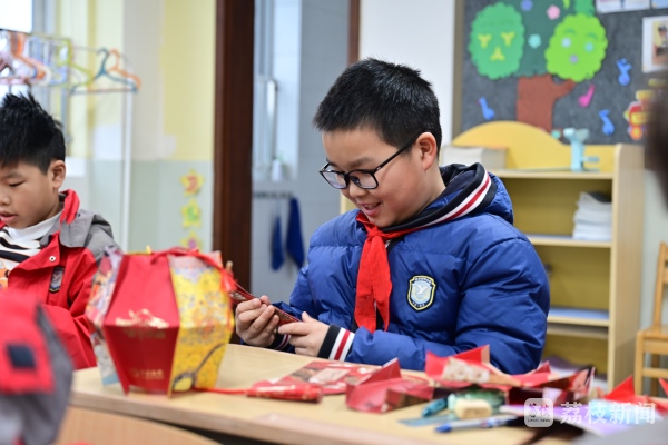 四(1)班学生姜一涵说:“我带来了装压岁钱的红包,我想和大家做一个漂亮的灯笼,装饰教室。”