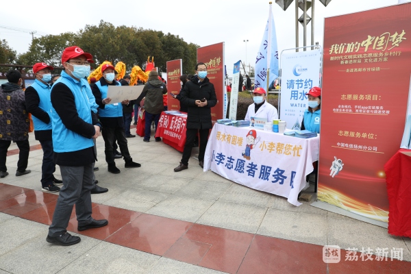 作为今年首场新时代文明实践志愿服务乡村行活动,活动除了给百姓献上精彩的文艺演出外,还组织了扬州市消防志愿服务总队、市文联等15个志愿服务队,为百姓进行政策宣讲、志愿服务。