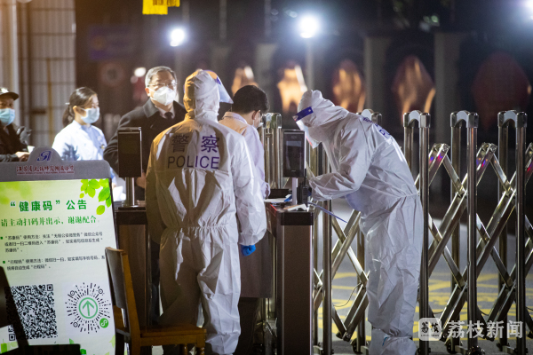 “若您现在返回小区,需前往3号楼参加核酸检测,谢谢配合。”锡山公安分局东北塘派出所出动警力500余人,到病例所在的东方天郡小区开展防疫封控工作,维护核酸检测现场秩序。锡山公安分局东北塘派出所副所长周晓春从早上6点开始就在小区门口执勤,在寒风中来回奔忙,护目镜上已经凝结了一层水珠。这时,一位老师带着一个小孩来到小区门口,需要联系孩子的父母,民警立即用对讲机通知小区内工作人员,最后将孩子顺利交回其父母手中。