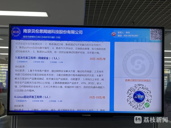 招聘会现场,格力电器(南京)有限公司、新工投资集团、中船重工鹏力(南京)塑造科技有限公司等35家企业到场参会,提供210个岗位,包含物料管理、软件工程师、质量检验员等。记者注意到,不少企业通过提供高薪岗位吸引优质人才入驻,例如南京贝伦思网络科技股份有限公司研发项目经理年薪30-45万,中国联合网络通信有限公司智网创新中心前端开发工程师年薪25万-35万。