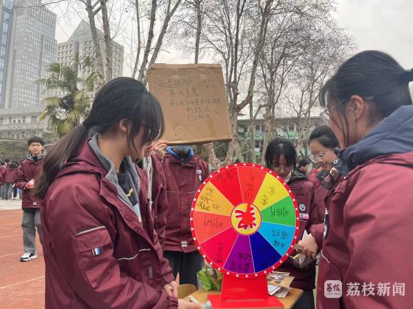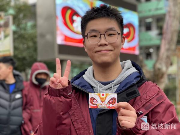 各班精心设计了趣味年俗游戏,有飞镖、套环、转盘等。在高二(5)班摊位前排起了长龙,学生们手拿“游园卡”等待兑换礼物。高二(5)班学生蔡文渲说:“这次游戏我们设施了转盘,有虎年笔记本,电视剧《开端》的海报,这种方式让大家都能参与。希望这些善款可以捐给有需要的朋友。”
