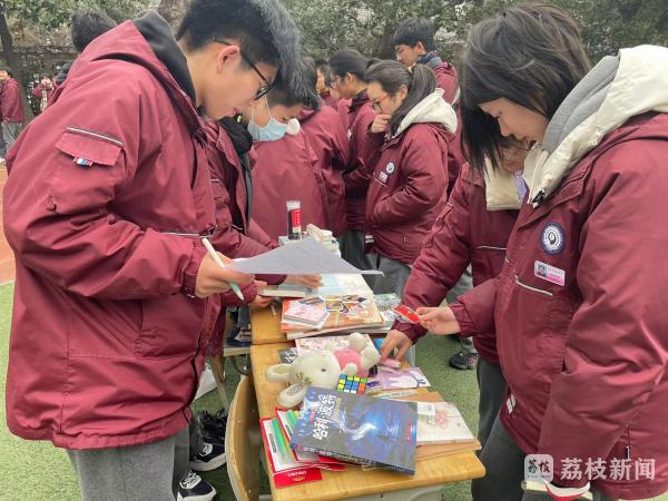 在南京第九中学操场,高一、高二的学生们正在进行义卖,今年的主题是“情暖冬日寒意,爱洒缤纷市集”。放眼望去,桌子上义卖物件琳琅满目,有学习用品,图书刊物,可爱的小摆件、自制的手工艺品等。主席台上社团表演也是火热进行中,不时有人为之驻足欢呼,尽情享受这场视听盛宴。
