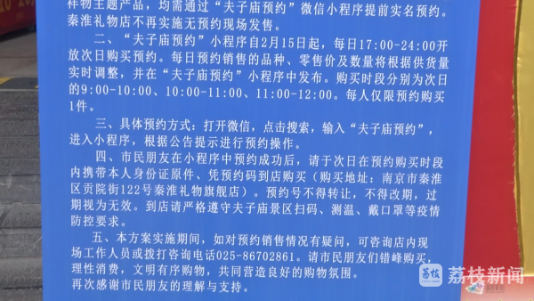 据了解,位于南京夫子庙景区的秦淮礼物旗舰店,是江苏省唯一一家冬奥会特许商品零售店,执行线上预约购买的方式后,这里的冬奥会相关纪念品不再通过线下直接发售。大家可以关注"夫子庙预约"小程序,每天17点到24点,开启预约通道,预约上之后,市民可以凭预约码到店内购买。