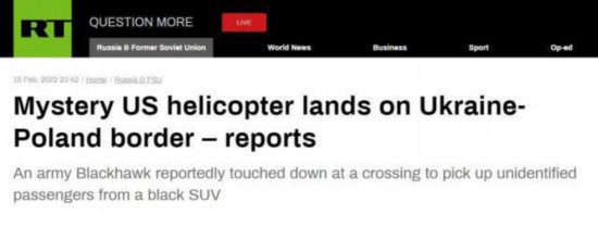 据今日俄罗斯电视台(RT)15日报道,根据当地多家媒体报道和飞行雷达追踪信息显示,美国陆军一架神秘的“黑鹰”直升机在当地时间15日午夜时分降落在波兰与乌克兰边境一处地点,接走了一辆黑色SUV上的几名乘客。