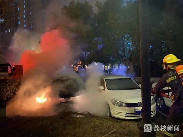 据车主描述,起火的车子是他今日刚买回来的二手车,停在停车场内不知为何就烧起来了。虽然扑救及时,但两辆车均有不同程度受损,目前火灾原因还在进一步调查中。