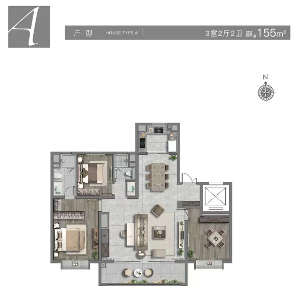 据效果图显示,7号楼紧邻后期会所,并且户型建面均为约155㎡,三房两厅两卫设计,本次加推后,项目将仅剩6号楼待售,户型建面约190㎡。