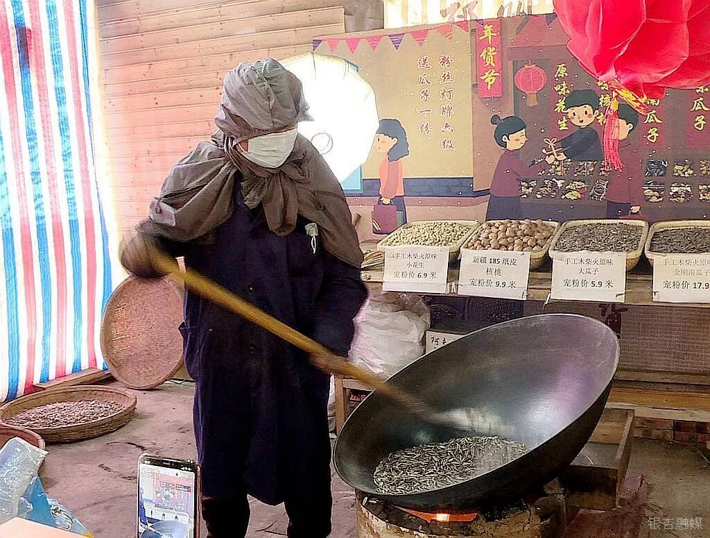在徐州邳州市邹庄镇古宅村,一场别开生面的炒货直播正在热闹进行,一部手机将顾客与卖家紧紧相连,一头,全国几十万名顾客实时观看坚果的炒制过程,而另一头,伴随着主播的讲解声,工作人员进行现场炒制,木柴火、大铁锅,最传统的制作方式让现场香飘四溢。