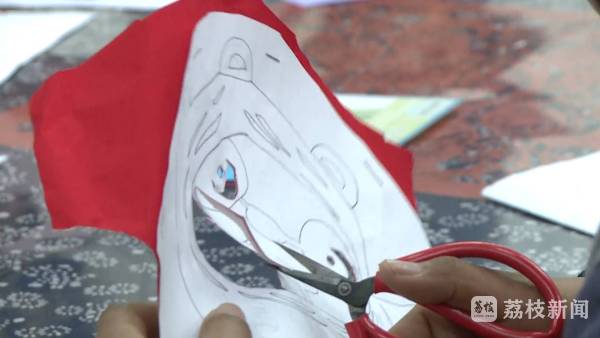 有了老师的作品做参考,学生们对冬奥吉祥物的形象也有了创作灵感。学生们先在纸上画出自己想要创作的剪纸作品,然后将作品和红纸钉在一起,这样剪出的作品颜色更鲜艳。
