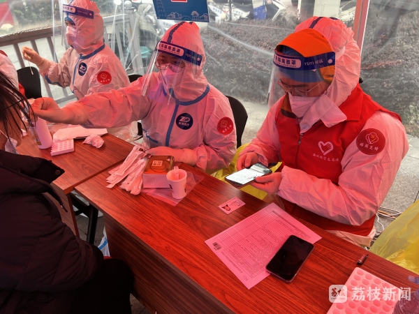 在核酸检测现场,除了排队等待采样的居民,还流动着苏州新城投资公司志愿者的身影。他们有的帮助录入居民信息、有的维持现场秩序、回答居民的疑问,在他们的协助下,核酸采样工作有条不紊地进行。