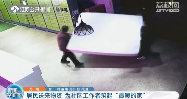 其实,这场爱心活动从2月16日下午就已经开始。监控中可以看到,大伙儿齐心协力,将一床床席梦思从居民家中搬来居委会,还有一个小姑娘,抱着足足有半个自己高的包裹,蹦蹦跳跳地跟着妈妈来帮忙。