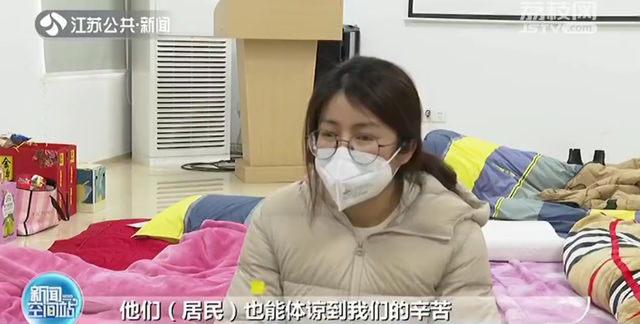 这场发起者俞春说:“第2轮核酸结束以后,我看他们工作人员已经非常疲惫了,腿已经拖不动了,他们说今天晚上可能还回不去,要值班,然后我就开始想着发动大家去弄点床垫、弄点被子,至少让他们可以有个休息的地方。”