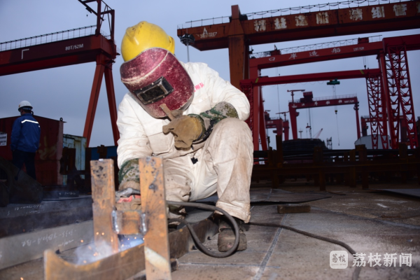 2月19日,厂子一正式开工,来自贵州的焊工老孙就带着焊枪登上了泰兴华泰船厂数米高的船台开始工作。“今年因为疫情,我也响应号召留在本地过年了,早点儿来就是为了讨个好彩头,也给自己定个‘小目标’,希望今年比去年赚得多。”老孙憨厚的笑道。