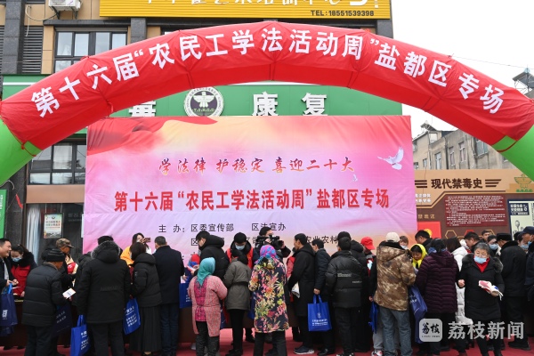 2月11日上午,盐都区第十六届“农民工学法活动周”现场集中宣传活动在大冈镇禁毒广场举行。活动现场,工作人员向群众发放法制宣传手册,普及《民法典》《劳动合同法》等法律法规。普法志愿者大力宣传劳动就业、社会保险、安全生产等与农民工生产生活息息相关的常用法律法规和政策、法律救济方式和途径,引导群众依法维护自身合法权益。